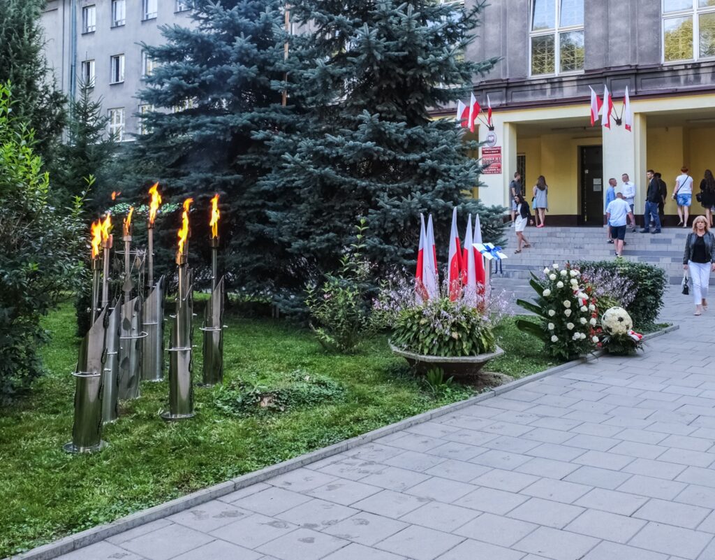 Na dziedzińcu szkolnym w dniu rozpoczęcia roku szkolnego zapłonęło siedem zniczy symbolizujących siedem dni obrony Westerplatte. (widoczne na fotografii powyżej).