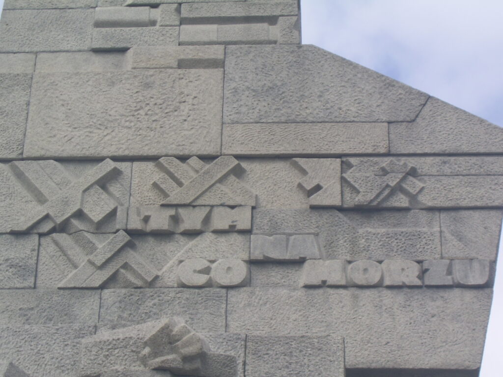 Wzorowaliśmy się na oryginalnym napisie umieszczonym na Westerplatte. Widoczny jest na fotografii poniżej.
